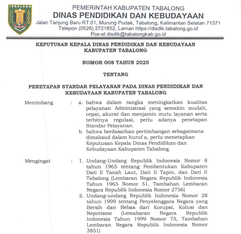 Layanan pada Dinas Pendidikan dan Kebudayaan bisa dilihat pada Standar Pelayanan di link :